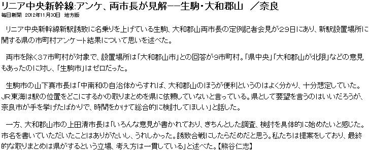 ![]() [1]産経(sankei.jp.msn.com/region/news/121128/nar12112802040000-n1.htm) ![]() [2]読売(www.yomiuri.co.jp/e-japan/nara/news/20121127-OYT8T01471.htm) ![]() [3]毎日(mainichi.jp/area/nara/news/20121128ddlk29040565000c.html) ![]() [4]毎日(mainichi.jp/area/nara/news/20121129ddlk29020619000c.html) ![]() [5]毎日(mainichi.jp/area/nara/news/20121130ddlk29020404000c.html) | ||