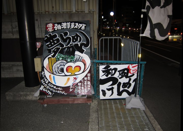 今日は曇後晴。第1の話題:11/4には近所にコンビにが出来るとの噂に触れたが、12/1昼に近所をぶらついていた処、セブン-イレブンだった。先ず、空に異様な球体[1]を発見。拡大すると、セブン-イレブンのアドバルーン[2]だ。早速、近付いて行くと、平屋の店舗らしき建物[3]が見える。途中、小さな池で鯉を飼っている場所[4]に出会う。もっと進むとあやめ池南6丁目の停留所[5]。こちらが表側[6]。そして戦利品[7]。だがこの近辺は閑静な住宅地であり、商売には余り向かない上、営業時間の長い(AM8:30〜PM10:30)いそかわ[8]も近くに控えている。あやめ池南ならば、駅の真ん前の角地ながら有効活用されていないこんな場所[9]こそずっと、商売には好適である。 第2の話題:あやめ池から西へ2駅、富雄へ。11/19に触れたジャンク屋哲[10]に行ってみる。幸い、行列はできていないので入店。オープンは2009年11月2日であるらしく、同じ年の9月30日に西大寺駅前のよってこ屋が消えた事を思えば、時代の変遷を感じざるを得ない。狭い店内には能書き[11]が一杯。その時、たまたま特別メニュー[12]を見つけた為、中から濃厚豚骨限定つけ麺を注文。出て来たのは、沢山のもやしを乗せた太麺と、豚骨とは称しながらも、鰹味が鈍感な筆者の舌にも届くスープ[13]だ。その夜、何故か伊丹へ。陸上自衛隊の東隣、171を挟んでドンキホーテの向い側にあるのは濃厚らーめん夢屋台[14]。どうやら「夢らーめん」[15]が看板メニューらしいので、注文。出て来たのはジャンク屋哲に劣らず濃厚なスープに浸かった細麺[16]だ。実はその数日前、北新地の然屋[17]も訪ねていた。以前は和歌山系のラーメン屋だった記憶がある。然屋と書いて「ねんや」と発音するが、東京には同じ字の「ぜんや」があるらしい。こってり濃厚系[18]が特徴。例によって味の評論を求める読者は筆者に期待せず、食べログかどっかへ行く事を奨める。 ![]() [1] ![]() [2] ![]() [3] ![]() [4] ![]() [5] ![]() [6] ![]() [7] ![]() [8] ![]() [9] ![]() [10] ![]() [11] ![]() [12] ![]() [13] ![]() [14] ![]() [15] ![]() [16] ![]() [17] ![]() [18] | ||