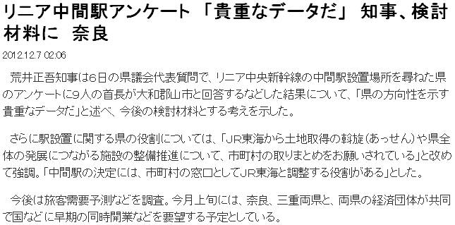 ![]() [1]産経(sankei.jp.msn.com/region/news/121207/nar12120702070002-n1.htm) | ||