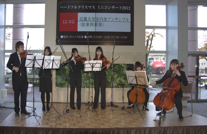 今日は晴時々曇。12/9だが、西大寺近辺をブラブラ。奈良ファミリーの北には、京都発のラーメンチェーン店である天下一品[1]がある。このラーメン屋の主力メニューも、こってり系。奈良ファミリー1Fの会場では、近大室内楽アンサンブル[3]をやっていた。この会場、らくだ広場と称され、大きならくだのオブジェと池があったが、撤去されていた。