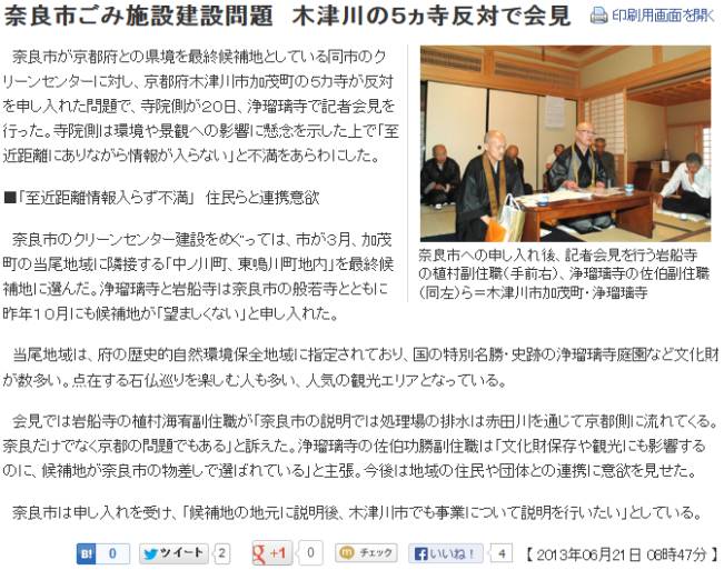 ![]() [1](kyoto-np.co.jp/politics/article/20130621000020) ![]() [2](mainichi.jp/area/kyoto/news/20130621ddlk26040439000c.html) ![]() [3](sankei.jp.msn.com/region/news/130621/kyt13062102010000-n1.htm) | ||