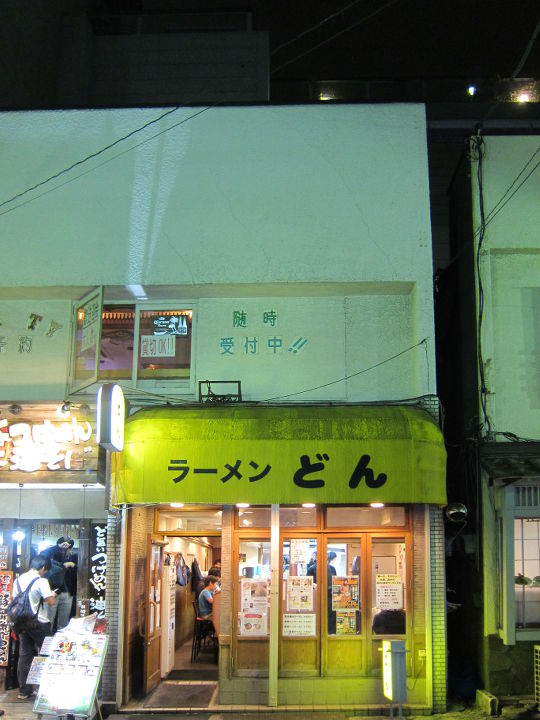 今日は曇後雨。3/31には漬け麺で有名な"あびすけ"を紹介したが、その隣にある"どん"[1]にも入った。何時も行列の出来る店だが、待たずに入れたのは幸いであった。この店の特徴は二郎系。もやしが山盛りで全体として量が多く、脂っ濃い[2]。