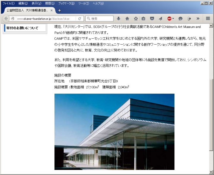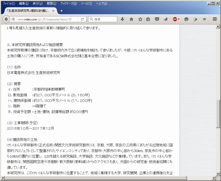 今日は晴。1/11には日本電産がけいはんな地区、より具体的には精華町に進出する計画を発表した事に触れた。さて、日本電産自身のプレスリリース[1]によれば、敷地は2.7万m2で所有者であるSCSKと購入について基本合意に至ったとある。けいはんな地区ではSCSKの系列の財団、大川情報通信基金が大川センターを2001年4月に開設し[2]、主に子供向けのイベントを開催していたが、精華町の不動産開発をやっているとは聞いた事が無い。それは専らURと京阪電鉄·三井不動産·野村不動産3社のJVが行っていた筈である。となると大川センターを廃止し、その土地を売却するのであれば、面積2.7万m2も符合する。これを裏付けるかの如く、現在、関西文化学術研究都市推進機構の精華·西木津地区のページ[3]にも、大川センターへの言及がない事からして、運営を中止したのだろうか。 けいはんな地区では私のしごと館が営業を中止し、京都府の研究施設に転用された他、ガラス工芸を特徴とするルイ·ルルー美術館は休業、パナソニック系の財団や三輪そうめん山本、呉竹のアンテナショップも何時の間にか消えた。昨今、企業の"研究開発型産業施設"が増えているとは云え、集客·文化施設の維持は難しい様子だ。 ![]() [1]www.nidec.com/ja-JP/corporate/news/2016/news0107-01/ ![]() [2]www.okawa-foundation.or.jp/disclose/okawacenter.html ![]() [3]kri-p.jp/reseachActivites/location/04/ | ||